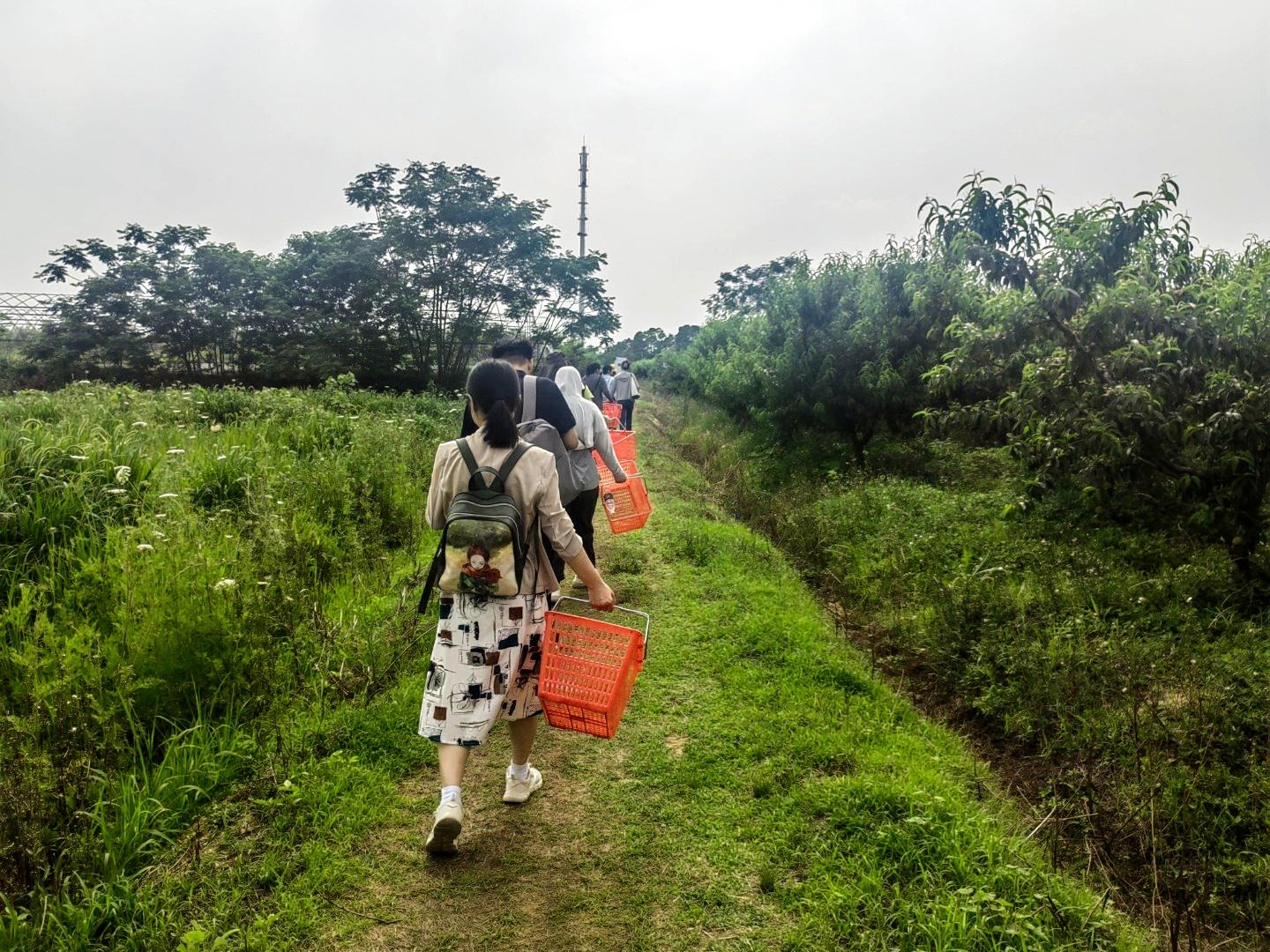 下午充满田园趣味的活动正式开启。在池塘边,大家手持钓杆,全神贯注盯着水面,耐心等待小龙虾上钩,每一次拉杆都牵动心弦。随后,员工们走进果园,亲手采摘成熟饱满的桃子;大家穿梭于果树间,亲手摘下新鲜果实,在亲近自然的过程中放松身心,分享收获的喜悦,享受田园风光带来的惬意与美好。